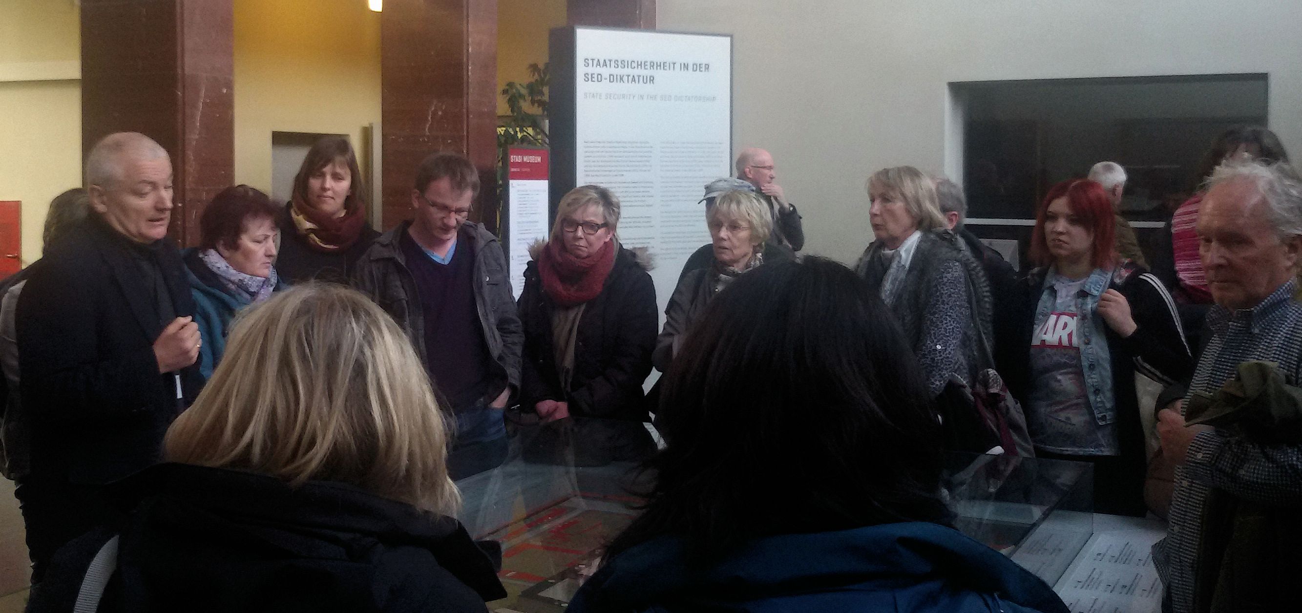 Zusammengefunden hatte sich eine bunte Gruppe u.a. bestehend aus politisch interessierten KielerInnen, Studenten der Europa-Universität Flendsburg, einer Gruppe von ArbeitnehmerInnen der Kappelner Werkstätten, SchülerInnen des Mehrgenerationenhauses in Gaarden, sowie MitarbeiterInnen der Kindertagesstätte Zauberwald aus Westerrönfeld. Sie hatten drei Tage die Möglichkeit bei einer Stadtrundfahrt und politisch interessanten Stationen wie der Ausstellung „Alltag in der DDR“ und einer Führung durch die ehem. Stasi-Zentrale das politische Berlin kennen zu lernen.