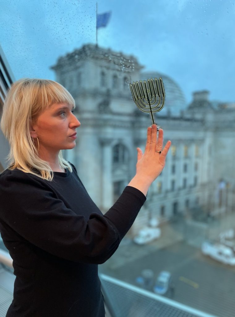 Ich möchte, dass sich meine jüdischen Mitbürger*innen wieder wohl und sicher in Deutschland fühlen können und mit dem Chanukkaleuchter zeige ich: ich stehe an Eurer Seite, damit Auschwitz und die Shoa nie wieder möglich sein können.“