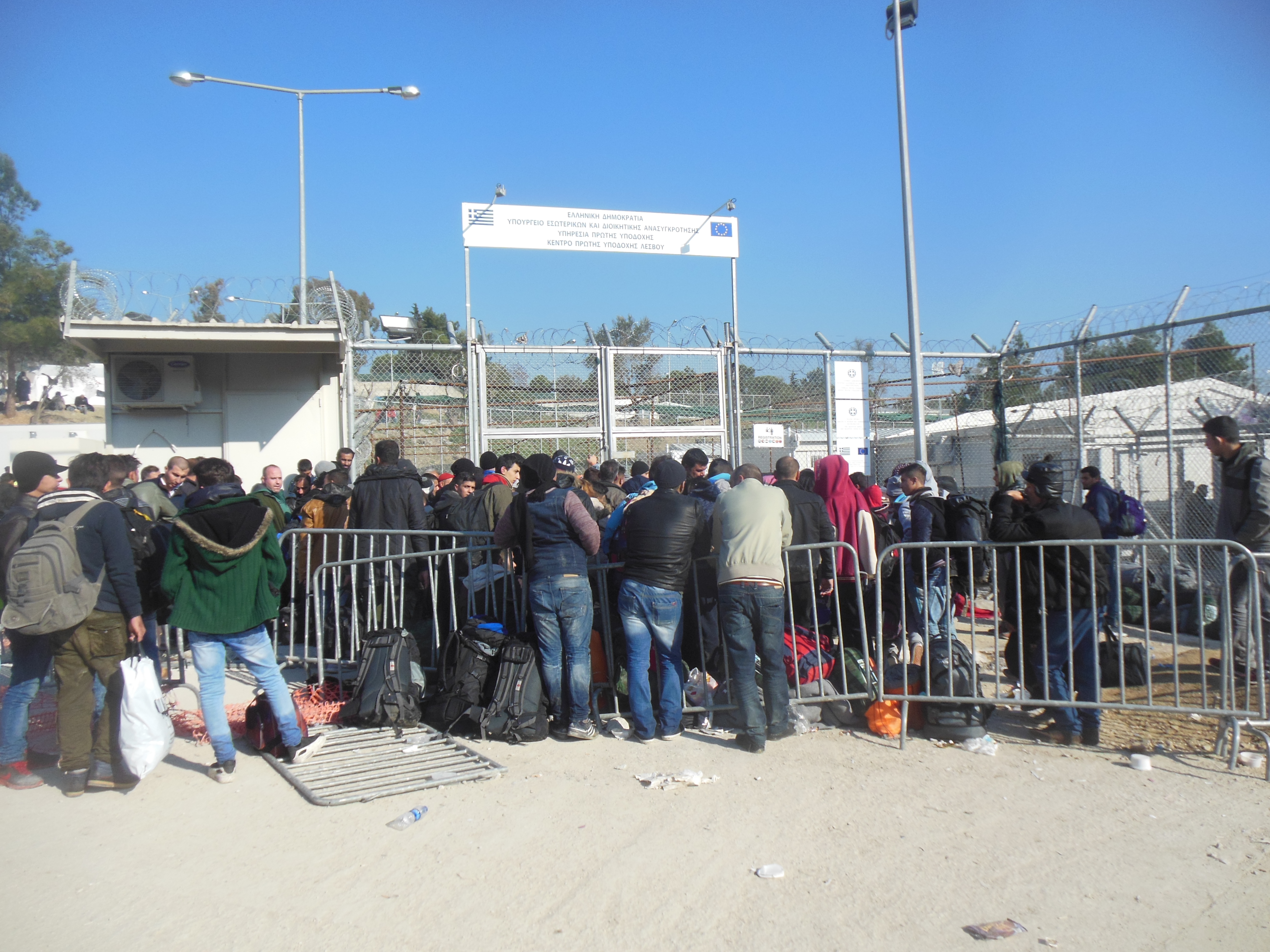Nach allem was wir über den ersten „Hotspot“ in Griechenland gehört und gelesen hatten, die mit dem Hotspot-Konzept verbundenen Hoffnungen sowie die kritischen Stimmen, die die Einhaltung humanitärer Standards in der Umsetzung anmahnen, war ich mehr als gespannt, mir am Dienstag endlich selbst einen Eindruck von dem Registrierzentrum Moria zu machen. Das Fazit ist ernüchternd. Das Chaos, das die Flüchtlinge dort erwartet ist unbeschreiblich. Teile des Lagers sind mit NATO-Draht und hohen Zäunen abgetrennt, darunter auch ein abgeschlossener Bereich für allein reisende Minderjährige. Es gibt Mitarbeiter diverser Hilfsorganisationen, griechischer Behörden und der EU (FRONTEX, EASO), die Abläufe erscheinen undurchsichtig und chaotisch. Viele Flüchtlinge versuchen, die Insel möglichst schnell zu verlassen und ihre Flucht fortzusetzen. Zuvor müssen sie sich jedoch im „Hotspot“ Moria registrieren lassen. Dort treffen täglich im Schnitt ca. 2.000 Menschen ein, womit die vorhandenen Kapazitäten völlig überlastet sind. Für die daraus folgenden langen Wartezeiten gibt es keine Vorkehrungen der griechischen Stellen, was angesichts der kühlen Temperaturen und des steigenden Anteils von Kleinkindern ein ernstes humanitäres Problem darstellt. Die Aufenthaltsdauer beträgt zwischen wenigen Tagen (nach Angaben der Polizei) bis hin zu einigen Wochen (nach Angaben der Betroffenen).